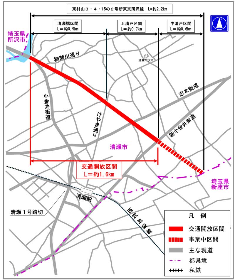 | 最新開通区間 | 清瀬橋〜新小金井街道 | 約1.6km(2026年2月14日 15:00開放) |